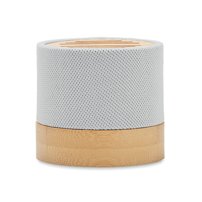 5.0 vezeték nélküli hangszóró RPET házban, bambusz részlettel a tetején, LED-es fényjelzéssel. 1 db újratölthető 300 mAh lítium-ionos elemmel. SD-kártya portot és AUX/USB kábelt tartalmaz. Teljesítmény: 3W, 3 Ohm és 5V. Üzemidő kb. 3 óra. A bambusz természetes anyag, színében, mintázatában és méretében esetenként eltérő lehet.