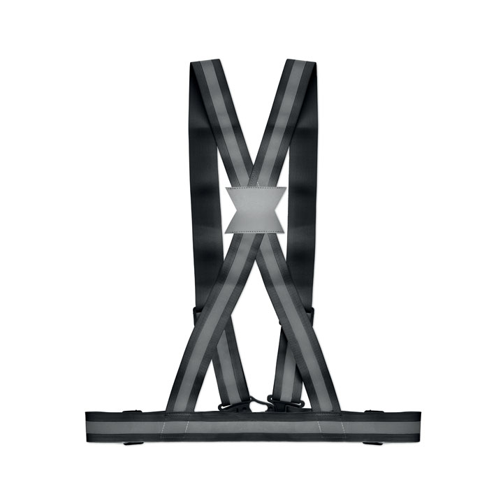 Állítható 360°-os, láthatósági fényvisszaverő kantár ezüst csíkokkal. Csak promóciós célra.